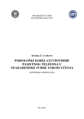 Psihološki kolerati upotrebe pametnog telefona u neakademske svrhe tokom učenja