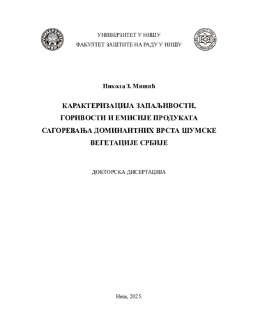 Karakterizacija zapaljivosti, gorivosti i emisije produkata sagorevanja dominantnih vrsta šumske vegetacije Srbije